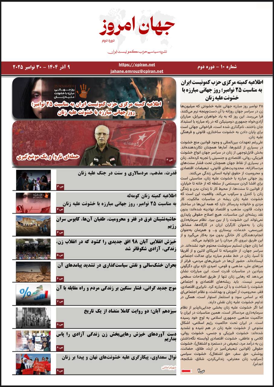 اطلاعیهی کمیتهی خارج از کشور حزب کمونیست ایران بهمناسبت سال نو میلادی _1404.10.10