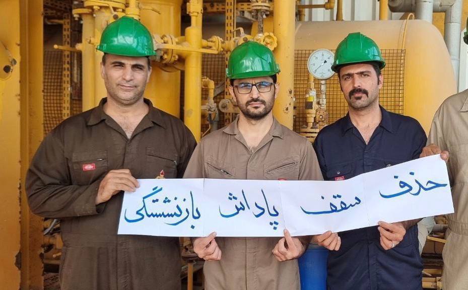 تجمع اعتراضی کارکنان رسمی شاغل در سکوی دریایی ابوذر وبهرگانسر