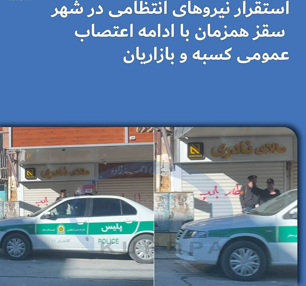 برپایه گزارش دریافتی نیروهای امنیتی در سطح بازار سقز پراکنده شده و اقدام بە پلمپ مغازهها و زدن اسپری برای اخطار پلمپ کرده اند .
