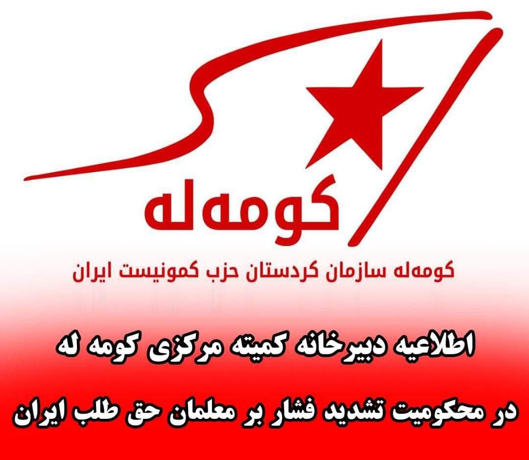 کومەلە همانگونه که بارها اعلام کرده است حمایت فعالانە و بی دریغ خود از جنبش حق طلبانە معلمان را اعلام می دارد. کومه له ضمن خواست آزادی فوری معلمان دربند و دیگر زندانیان سیاسی ، عزم و ارادە همبستە معلمان در اعتراض و اعتصابات کنونی در سراسر ایران و از جملە شرکت فعال معلمان کردستان در این حرکت های حق طلبانە در برابر رژیم سرکوبگر جمهوری اسلامی را می ستاید و آنرا ارج می نهد. در همانحال اقدام نهادهای امنیتی و اطلاعاتی رژیم ، عوامل و سایت های وابستە بە آنان در پروندە سازی جعلی علیە معلمان دربند و دیگر زندانیان سیاسی دستگیر شدە را محکوم و بی اعتبار می داند. کومەلە از مردم معترض و مبارز کردستان درخواست حمایت فعال و همەجانبە از مبارزە و اعتراضات شجاعانە معلمان را دارد.