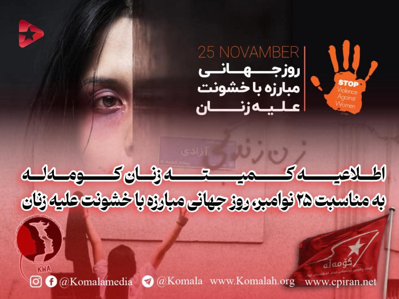 اطلاعیه کمیته زنان کومه‌له به مناسبت ۲۵ نوامبر، روز جهانی مبارزه با خشونت علیه زنان