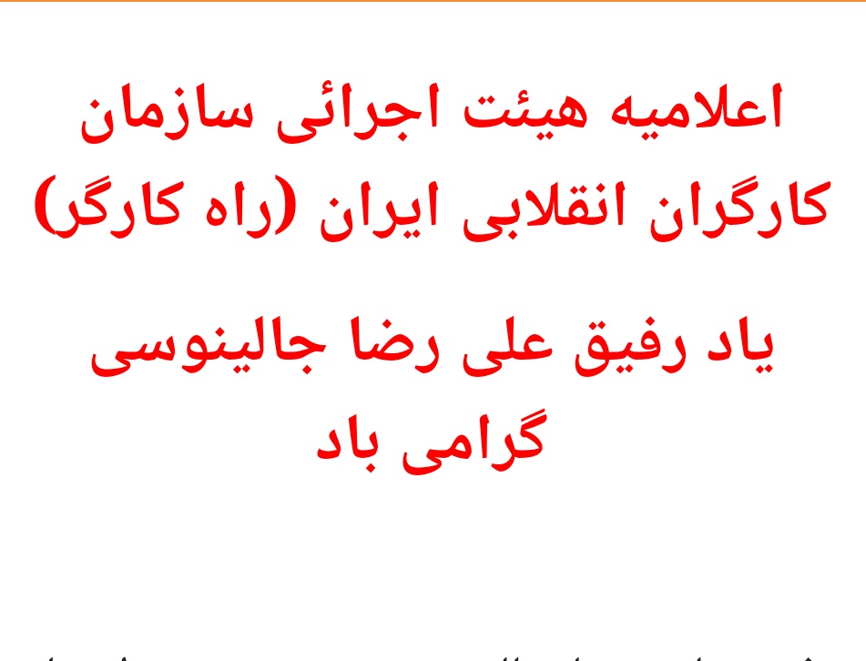 در نهایت، سال های طولانی تنهایی و زندگی ناسازگار تبعیدی، طاقت رفیق مان را به تحلیل برد و به بازگشت مایوس کننده به کشور و پایان راه زندگی اش کشاند. زندگی ای که در راه آرمان پیروزی و بهروزی زحمتکشان طی شده بود. یاد عزیز رفیق علی جالینوسی، رفیق مقاوم، مبارز و رزمنده و وفا دار مان را گرامی می داریم.