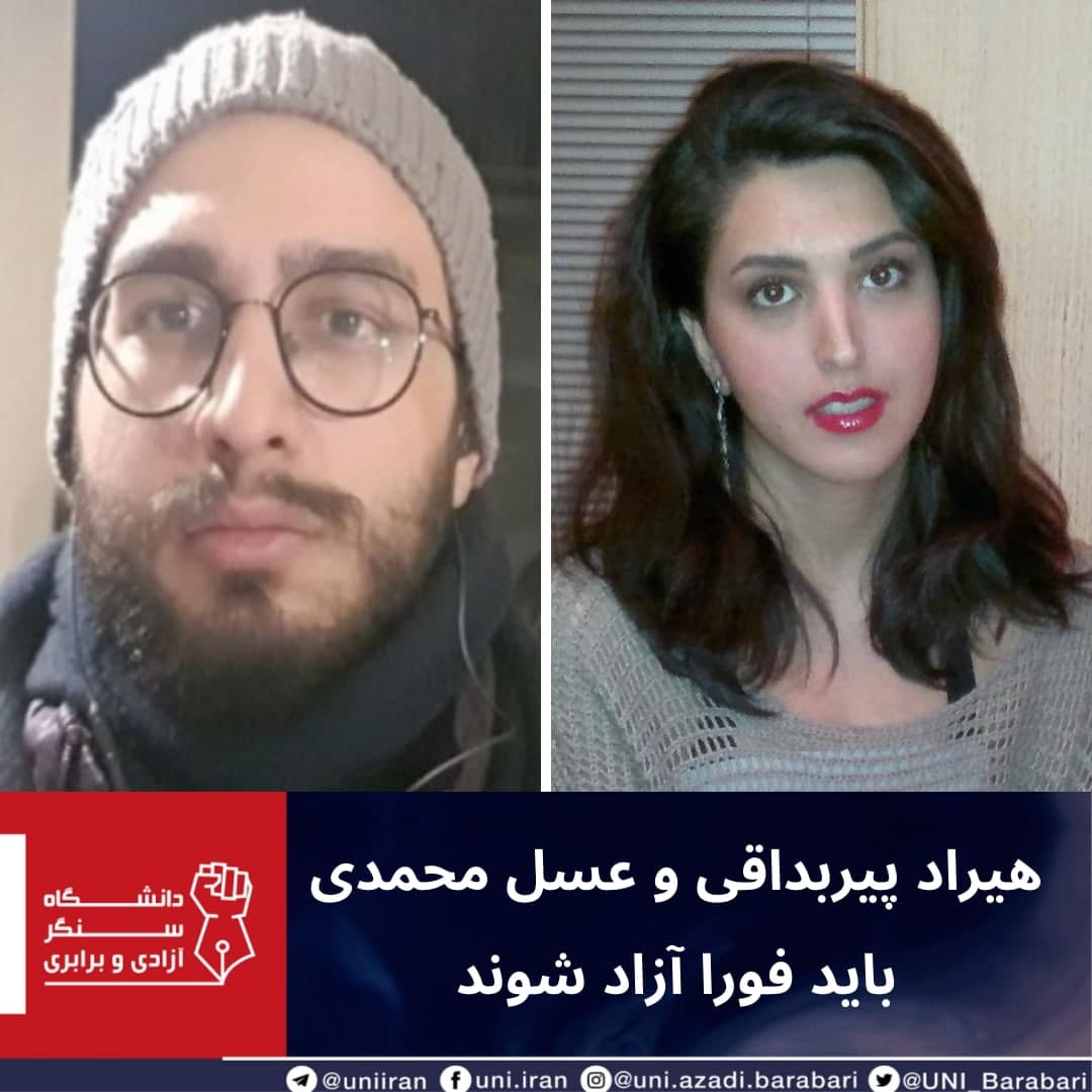 این دو فعال کارگری دو هفته پیش همراه با چند تن از فعالان کارگری در بیانیهای از احضار تلفنیشان به وزارت اطلاعات خبر داده بودند». عسل محمدی و هیراد پیربداغی همراه با هفت تن دیگر از فعالان مدنی و زندانیان سیاسی سابق در حمایت از کارزار «نه به سلول انفرادی» اقدام به ثبت شکایت علیه آمرین و عاملین سلول انفرادی کرده بودند. ساعاتی بعد اما نیروهای امنیتی با ورود «خشونتآمیز» به منزل این دو شهروند، اقدام به تفتیش و بازداشت آنها کردند.