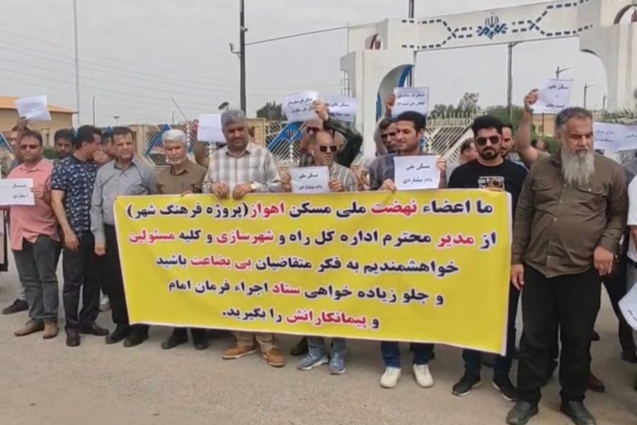 جمعی از متقاضیان طرح مسکن ملی در اهواز، روز چهارشنبه 23 مهرماه، در اعتراض به تاخیر طولانی در واگذاری واحدها، مقابل ساختمان استانداری خوزستان تجمع کردند.