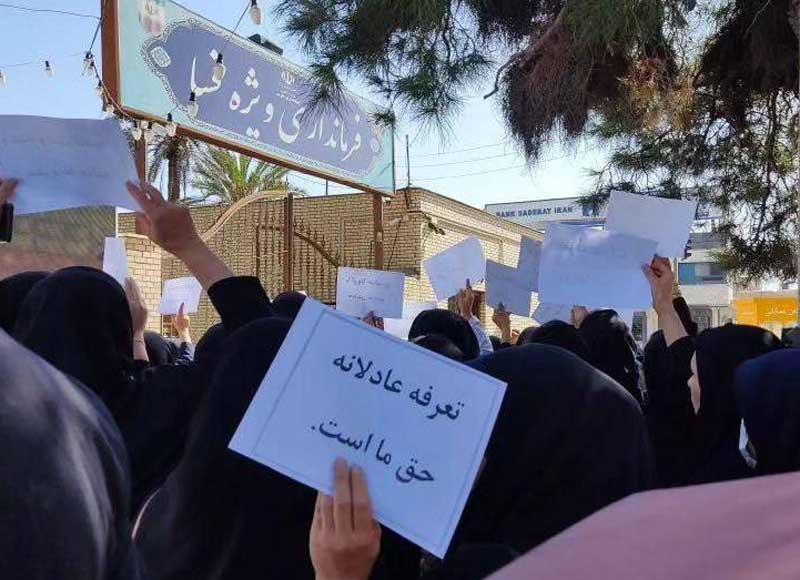 جمعی از پرستاران و کمک پرستاران شهرستان فسا، روز دوشنبه 24 اردیبهشت ماه در مقابل فرمانداری رژیم در این شهر تجمع کردند.