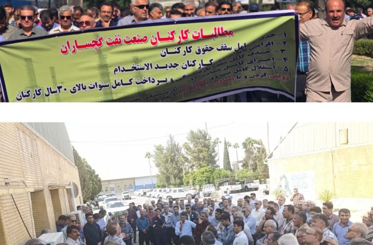 جمعی از کارکنان رسمی شرکت بهرهبرداری نفت و گاز گچساران روز دوشنبه 5 خرداد ماه در مقابل اداره مرکزی این شرکت دست به تجمع زدند.
