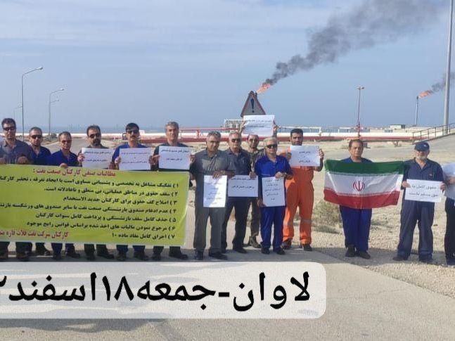 روز جمعه 18 اسفندماه،شماری از پرسنل عملیاتی شرکت نفت فلات قاره در لاوان اقدام به برگزاری تجمع کردند.