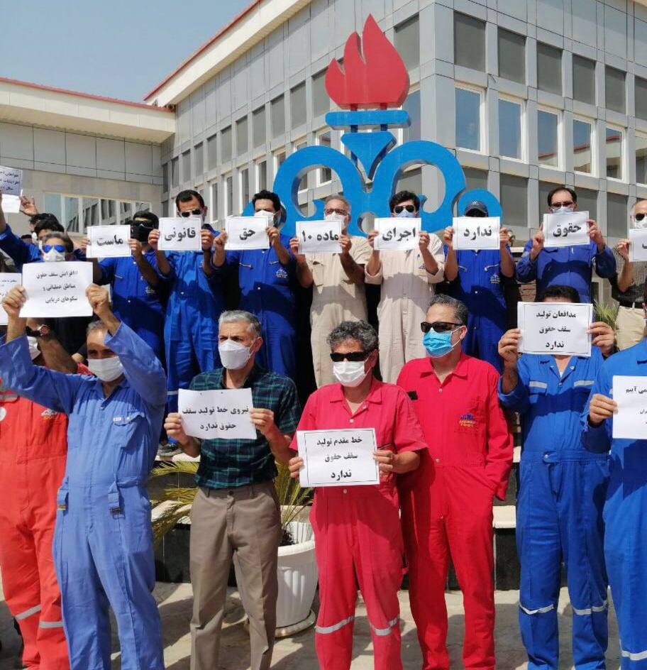 طبق گزارشات منتشر شده، آنها با برپایی تجمع و حمل دست‌نوشته‌هایی نسبت به سقف‌ غیرقانونی حقوق، اعتراض کرده، و خواهان رسیدگی به مطالبات شغلی و معیشتی خود شدند.همچنین گفتنی است، کارگران معترض خواستار حذف کامل سقف‌حقوق و پرداخت دستمزد طبق قوانین استخدامی جاری در وزارت نفت هستند.