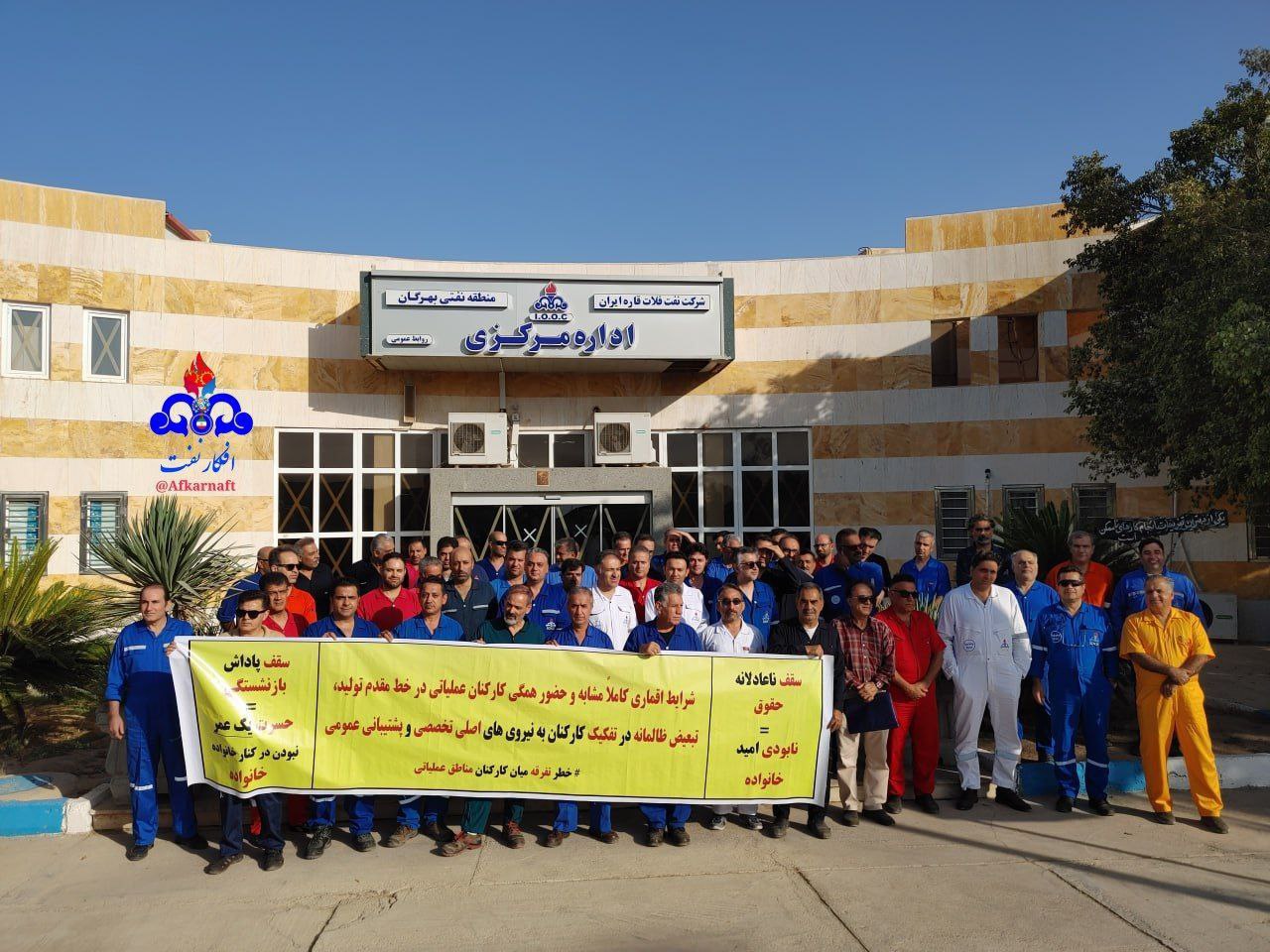جمعی از کارگران منطقه نفتی بهرگان، روز شنبه ۱۹ مهرماه، در اعتراض به عدم تحقق مطالبات صنفی و قانونی خود، دست به تحصن و راهپیمایی اعتراضی زدند.