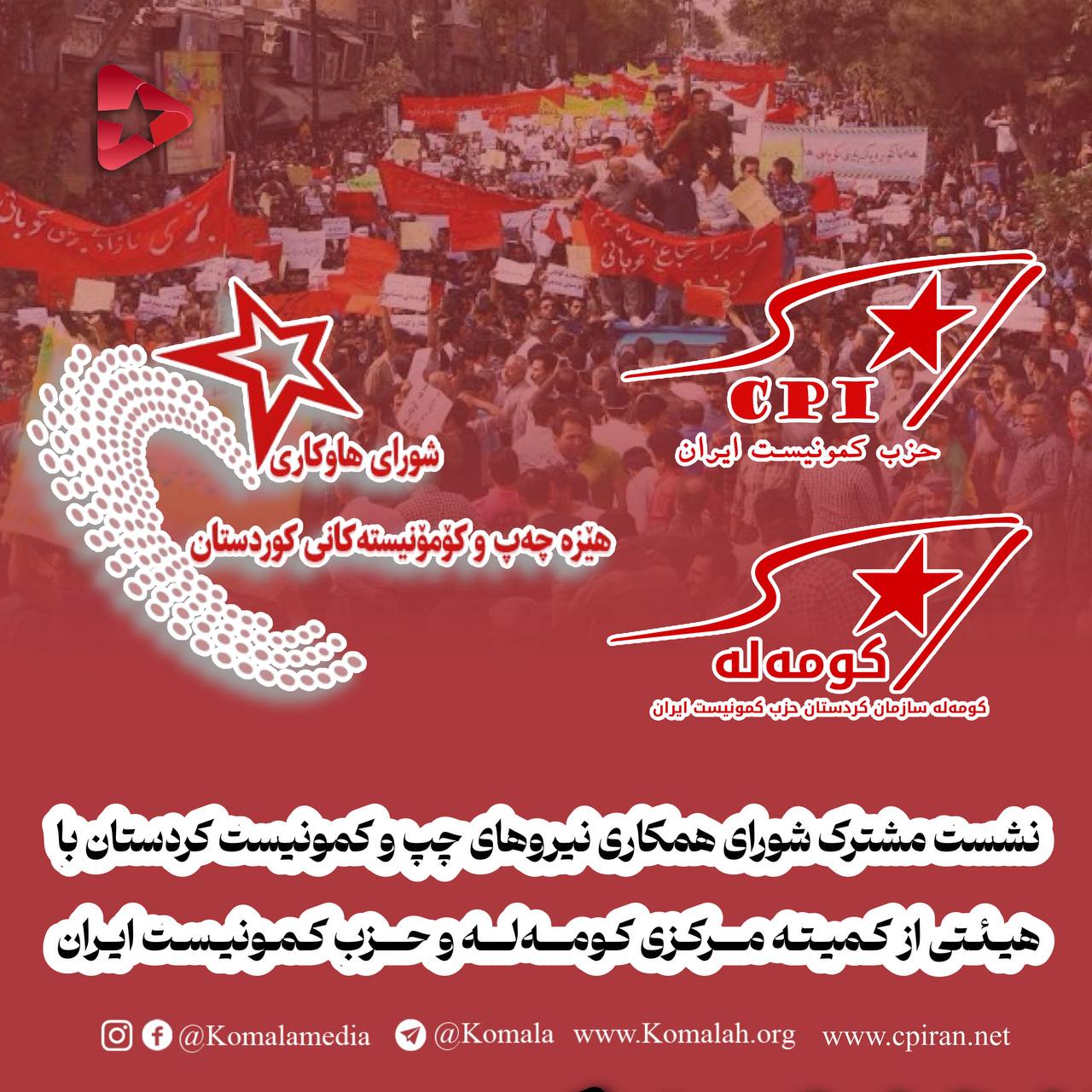 بدینوسیله به اطلاع میرساند که روز پنجشنبه ۵ مارس، به پیشنهاد کمیته اجرایی حزب کمونیست ایران، نشستی مشترک میان شورای همکاری نیروهای چپ و کمونیست کردستان و هیئتی از کمیتههای مرکزی کومهله و حزب کمونیست ایران برگزار شد.