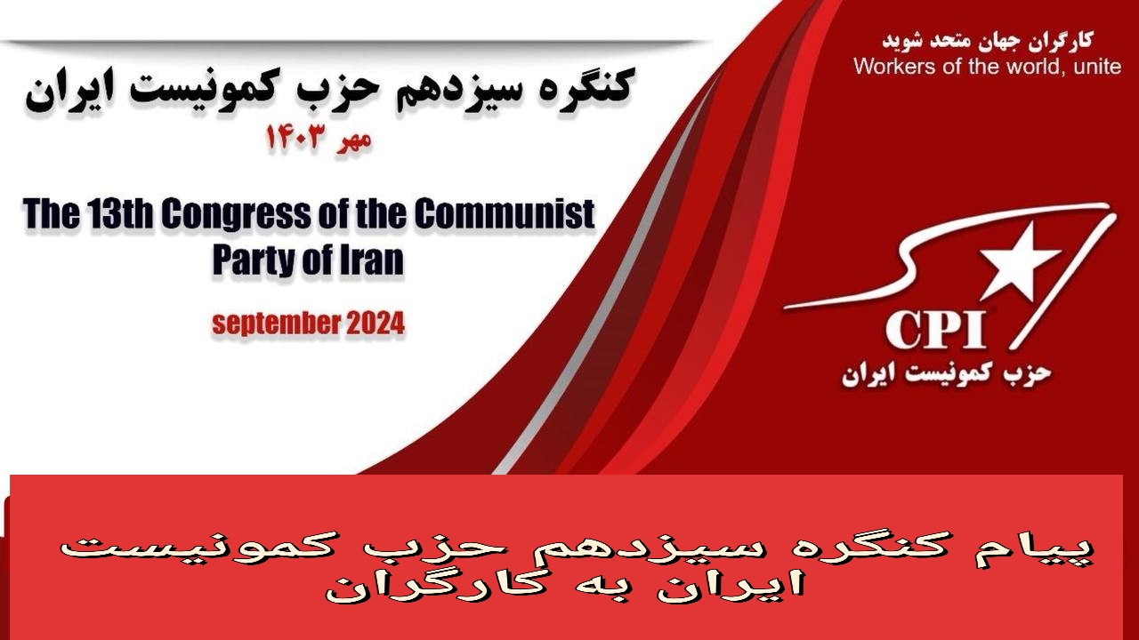 بخش پیشرو طبقه کارگر ایران، به یمن مبارزات طولانی مدت، آگاهی طبقاتی و سیاسی، و کسب تجربه از مبارزات جهانی طبقه کارگر، علیرغم محدودیت ها و موانع مختلف، گام های ارزنده ای در زمینه ایجاد تشکل های مستقل طبقاتی برداشته است. در ادامه این روند است که می توان امیدوار بود با هر شکافی که در دیوار دیکتاتوری سرمایه داری حاکم ایجاد شود، توازن قوای مبارزاتی به نفع جنبش طبقاتی کارگران بهبود پیدا کند و شاهد گسترش تشکلهای توده ای و مستقل کارگران باشیم. در گزارش سیاسی کمیته مرکزی حزب کمونیست ایران به کنگره سیزدهم، بر ضرورت شرکت فعال طبقه کارگر در شکل دادن به بدیل سیاسی جایگزین جمهوری اسلامی تأکید شده است. این یک امکان واقعی است . این بدیل میتواند از طریق تداوم مبارزات هدفمند و پیگیرانه، گفتمان سوسیالیستی را در متن مبارزات جاری به هژمونیک کند. تنها از این طریق است که حاصل رنج و مبارزه طبقه کارگر به جایگزینی این جناح سرمایه داری حاکم با یک جناح دیگر سرمایه داری در اپوزسیون منجر نخواهد شد. شرکتکنندگان در کنگره سیزدهم حزب کمونیست ایران، بار دیگر پیام همراهی، همبستگی و همگامی خود را با شما، زنان و مردان کارگر ایران، تکرار میکنند.
