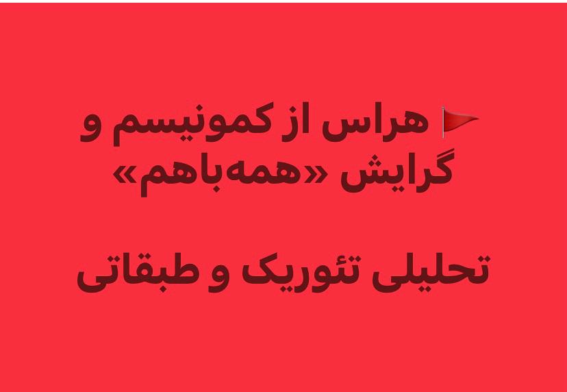 هراس از کمونیسم و گرایش «همهباهم». این دو پدیده، اگرچه ظاهراً متفاوتند، اما ریشهای مشترک دارند: جلوگیری از شکلگیری آگاهی طبقاتی و مهار سازمانیابی انقلابی تودههای تحت ستم و استثمار شدە.